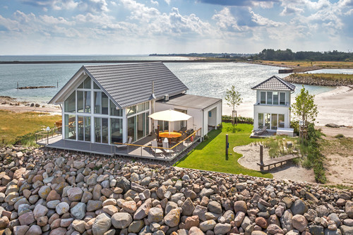 Mal ist es spiegelglatt und glänzt im Sonnenuntergang, dann ist es rau von Wind und Regen, tiefschwarz oder von leuchtendem Blau und Grün: Am Meer kann sich Holger Mommsen* einfach nicht sattsehen. So träumte er lange von seinem Ferienhaus am Wasser. 2012 wurde er im Nordosten Schleswig-Holsteins, in der Nähe von Kappeln an der Schlei, fündig. Nach einer etwa 75-minütigen Autofahrt gelangt der Unternehmer von seinem Wohnort in Hamburg zu dem mehr als 150 Hektar großen Gelände eines ehemaligen Marinestützpunktes. Auf dem Areal, etwa so groß wie die Hamburger Hafencity, entsteht ein Ferienresort, dessen Mittelpunkt ein Jachthafen bildet. Aus der Insolvenzmasse des ersten Bauträgers erstand der heute 54-Jährige zwei nebeneinanderliegende Bauplätze von insgesamt 1.000 Quadratmetern. Das Grundstück liegt auf der nördlichen Außenmole, die rund 800 Meter lang und kaum breiter als 50 Meter ist. Nach Norden und Süden breitet sich die Ostsee unverbaubar vor dem Haus der Mommsens aus.
