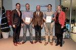 (von links nach rechts): Florian Pronold (Parlamentarischer Staatssekretär BMUB, Karlheinz Müller (Ingenieurbüro Baubiologie Müller), Helmut Holl (Baufritz, Der Ökohaus-Pionier seit 1896) , Maximilian Kral (Ingenieurbüro Baubiologie Müller) und Prof. Dr. Natalie Eßig (Hochschule München) Quelle: BMUB / Matthias Francke