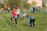 Schüler/innen der Freien Waldorfschule Wetterau in Bad Nauheim beim Pflanzen der jungen Laubbäume.