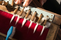 Das Bild verdeutlicht sehr schön, was mit Stapellänge gemeint ist – und wie man sie messen kann: auf sehr alte, einfache Weise auf Filz, gekämmt mit einer Zahnbürste. Unsere Baumwolle kommt nicht aus hochtechnisierten Anlagen, weshalb durchaus noch tradierte Methoden angewendet werden.