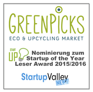 Große Ehre für Greenpicks! Der Online-Marktplatz für nachhaltige Produkte Greenpicks – Eco & Upcycling Market, ist für den Startup of the Year Leser Award 2015/2016 nominiert. Einmal im Jahr prämiert die Zeitschrift Startup Valley News durch ihre Leserschaft das Startup Unternehmen des Jahres und stellt die einzelnen Projekte und Firmen im Elevator Pitch vor.