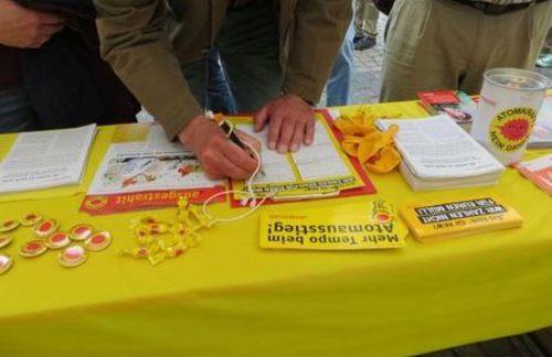 Viele besorgte AnwohnerInnen unterschrieben am .ausgestrahlt-Stand gegen die „Bad Bank“-Pläne der Atomwirtschaft, weil sie befürchten, „dass am Ende