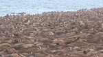 Es ist bereits das 6. Mal in den letzten acht Jahren, dass die Walrosse in der Tschuktschen-See sich mangels Eisschollen ans Ufer schleppen. Experten des US-Regierungsinstituts USGS (United States Geological Survey) vermuten, dass die Tiere auf der Suche nach Packeis an dem Küstenstrich gestrandet sind.