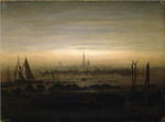 Caspar David Friedrich: Greifswald in the Moonlight, 1817, Wikipaintings, public domain