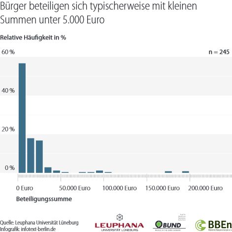 Besonders bedrohlich für kleinere private Investoren sei laut Untersuchung auch die geplante Regelung, wonach ab 2017 nur noch Marktteilnehmer Erneuerbare-Energie-Anlagen errichten dürften, die per Ausschreibung den Zuschlag erhalten hätten. Dies könnte das endgültige Aus für die Bürgerenergie bedeuten, so Lars Holstenkamp von der Leuphana Universität: „Die volkswirtschaftliche Logik und sämtliche Erfahrungen aus der Praxis anderer Länder zeigen: Ausschreibungen begünstigen die größten Anbieter. Mit einer Ausschreibung entstehen Transaktionskosten und Risiken, die größere Unternehmen leichter abfangen können. Bürgerenergie-Akteure hingegen können weder die Risiken streuen, sie durch eigenes großes Kapital absichern oder die höheren Transaktionskosten zwischenfinanzieren. Bürgerenergie wird daher kaum eine Chance haben, sich im Ausschreibungsverfahren gegen größere Konkurrenten durchzusetzen.“