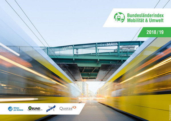 Der "Bundesländerindex Mobilität & Umwelt 2018/19" ist ein wissenschaftlicher Ländervergleich, den das Forschungsinstitut Quotas im Auftrag von Allianz pro Schiene, Bund für Umwelt und Naturschutz Deutschland (BUND) und des Deutschen Verkehrssicherheitsrates (DVR) erstellt. Daraus geht hervor: Baden-Württemberg (Platz 1), Thüringen (Platz 2) und Rheinland-Pfalz (Platz 3) sind deutschlandweit Spitzenreiter beim Thema nachhaltige Mobilität.