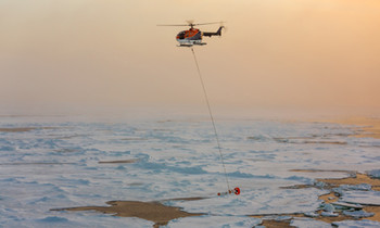 Von Bord des Forschungsschiffes Polarstern startete Stefan Hendricks mit Helikoptern, um mit einem Meereisdicken-Sensor über eine Strecke von mehr als 3.500 Kilometer die Dicke des verbliebenen Eises zu vermessen. Mit diesen dabei gesammelten Daten konnten sie anschließend jene des CryoSat-2-Satelliten eichen.