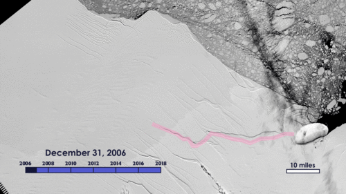 Der jetzt entstandene Eisberg hat enorme Maße: 175 Kilometer lang, bis zu 50 Kilometer breit und nach Schätzungen von Wissenschaftlern etwa der US-RAumfahrtbehörde Nasa etwa eine Billion Tonnen schwer.