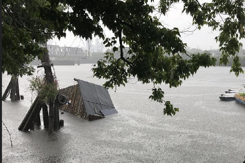 Ironischer Weise verschlang eine Flutwelle ein Ausstellungsprojekt zum Klimawandel: Die US-Künstlerin Mary Mattingly verankerte ihr "WetLands"-Schiff auf dem Schuylkill River in Philadephia. Jetzt wurde es nach starken Regenfällen von heftig anschwellenden Wassermassen aus der Verankerung gerissen. Es sank mitsamt der Ausstelungsobjekte, die Besucher über den nahen Klimawandel aufklärten.