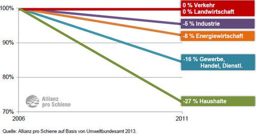 Schöne Nachricht: Nach Berechnungen der Verbraucherorganisation Allianz pro Schiene sorgen sich die Privathaushalte in Deutschland mehr als alle anderen Sektoren um ein besseres Klima. Sie stießen „von 2006 bis 2011 rund 27 Prozent weniger Treibhausgase aus“, schreibt die Allianz pro Schiene über ihre Auswertung. Auch die Klimasünder nennt sie beim Namen: „Landwirtschaft und Verkehr konnten keinerlei Verbesserung beim Gesamtausstoß erzielen.“