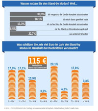 Trauriges Ergebnis trotz vieler Infokampagnen von Umweltverbänden: Nur einer von zehn Befragten tippte das korrekte Ergebnis – der Stromverbrauch durch die Geräte beziffert sich pro Jahr in einem durchschnittlichen Haushalt laut Preisvergleich.de auf etwa 115 Euro!