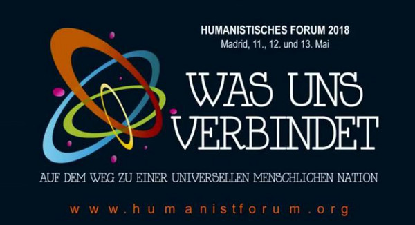 Unter dem Motto “Was uns verbindet – auf dem Weg zur universellen menschlichen Nation” findet am 11., 12. und 13. Mai in Madrid das 5. Europäische Humanistische Forum statt. Die Eröffnungssitzung findet in der Fakultät für Erziehungswissenschaften der spanischen Fernuniversität statt und am Samstag und Sonntag finden Veranstaltungen im Kulturzentrum „El Pozo“ statt.