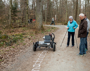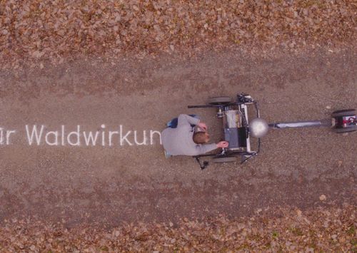Auf dem Waldweg steht in großen, hellen Druckbuchstaben: „Ich wünsche mir für jeden gefällten Baum zehn neue.“ Diesen Wunsch und zahlreiche andere hat nicht ein Förster mit Sägemehl für den staunenden Waldbesucher hinterlassen, sondern der Aktions- und Installationskünstler Gijs van Bon mit dem von ihm entwickelten Roboter „Skryf“. Auf einigen hundert Metern Waldweg unweit des Stuttgarter Haus des Waldes schrieb van Bon am 21. März, dem Internationalen Tag des Waldes, die Wünsche mit Sand auf den Boden. Dabei handelte es sich um die 50 häufigsten Wünsche von 1.444 Internetnutzern. Sie hatten an der Online-Aktion „Wald der Wünsche“ teilgenommen, initiiert von der Waldschutzorganisation PEFC Deutschland. Die Performance von van Bon bildete den Abschluss dieser Aktion und wurde filmisch auf Youtube dokumentiert.