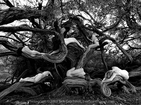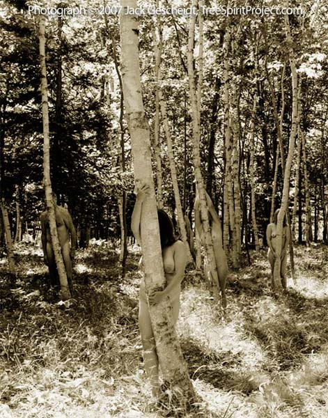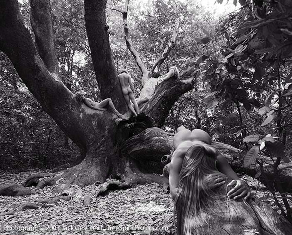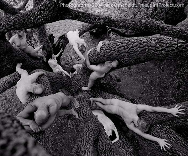 Daraus entwickelte Jack sein Fotoprojekt. Er suchte Menschen, die ähnliches beim Anblick von Bäumen empfinden und gruppierte sie zu Fotos: Menschen und Baum - und weil er das Ursprüngliche betonen will, umarmen und umschlingen seine Modells die urwüchsigen Riesen so natürlich, wie sie nur sein können. Jacks Modells posieren nackt und fühlen die Kraft des Baums so noch unmittelbarer.