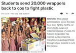 Schülerinnen im indischen Toothukudi (Region:Tamil Nadu) setzen ein deutliches Zeichen gegen Plastikmüll. Sie sammeln die Verpackungenund senden sie an die Hersteller zurück.