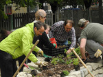 Bewohner beim arbeiten am Hochbeet © Wissenschaftsladen Bonn