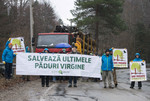 Urwaldschützer aus sechs EU-Ländern stoppen gemeinsam mit Wissenschaftlern und Alpinisten Holz-Trucks im Vidraru-Einzugsgebiet im Fagaras-Gebirge. Das Gebiet ist eines der wertvollsten Urwaldgebiete Europas. Die Aktivisten besetzten Bäume mit Spezialzelten und entrollten große Banner mit der Aufschrift: “Save Paradise Forests”.