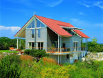 Baufritz-Musterhaus, ausgezeichnet mit dem Gesundheitszertifikat" Wohnmedizinisch empfohlen"