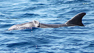 Ein Delfin mit einem kümmerlichen Rest von Schwanzfluke und mit Gewebewucherungen von eingewachsenen Resten eines Fischernetzes – der Anblick eines derart behinderten Großen Tümmlers ruft zunächst Mitleid und Sorge hervor.