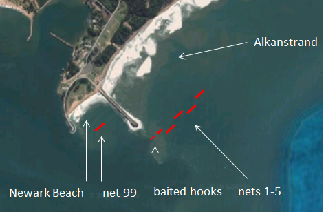 Derzeit sind 37 Strände in KwaZulu-Natal mit den knapp unter der Wasseroberfläche verankerten Stellnetzen ausgerüstet. Ihre Gesamtlänge summiert sich auf 23,4 Kilometer.