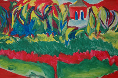 Gemalt wurden die insgesamt 27 Bilder von Kindern und Jugendlichen, die im Schuljahr 2016/ 2017 eine Integrationsklasse an der Carl-Schurz-Realschule besucht haben. Die Bilder zeigen, wie sie die Flucht und auch die Natur in Deutschland wahrgenommen haben. Künstlerin Eva-Maria Salm hatte die jungen Geflüchteten, die überwiegend aus Syrien stammen, an das Malen und auch an das Thema der Ausstellung herangeführt. „Das Malen hat vielen von ihnen geholfen, zumindest ein Stück weit in Deutschland anzukommen und auch die deutsche Sprache zu lernen“, erklärt Eva-Maria Salm. „Wenn wir bedenken, mit welchen traumatischen Erlebnissen die Kinder und Jugendlichen fertig werden müssen, ist es umso erstaunlicher und auch sehr erfreulich, dass sie mit sehr kräftigen Farben gemalt haben.“