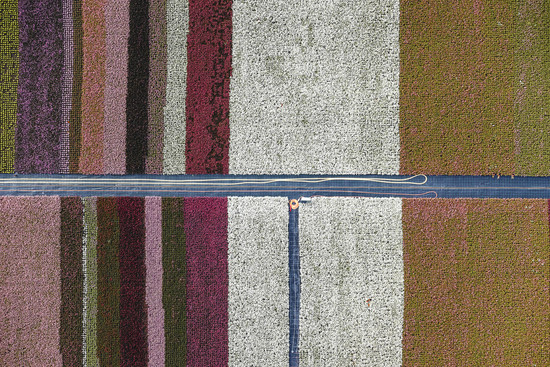 Das Projekt "HABITAT" des Fotografen Tom Hegen beschäftigt sich mit der Beziehung zwischen Mensch und Natur und den Eingriffen in natürliche Lebensräume. Seine Luftaufnahmen vermitteln ungewohnte Einblicke von landwirtschaftlichen Flächen bis zu Straßenkreuzungen, vom Tagebau bis zu Wasserstraßen. Die Fotos verlassen den üblichen Blickwinkel, um so unseren Lebensraum aus einer neuen Perspektive darzustellen. Ein Wald zum Beispiel kann vom Boden aus wie gewöhnliche, ursprüngliche Natur aussehen. Aber aus der Luft betrachtet, sieht man plötzlich, dass dieser Wald auf einem Raster aufgebaut ist, das vom Menschen erschaffen wurde.
