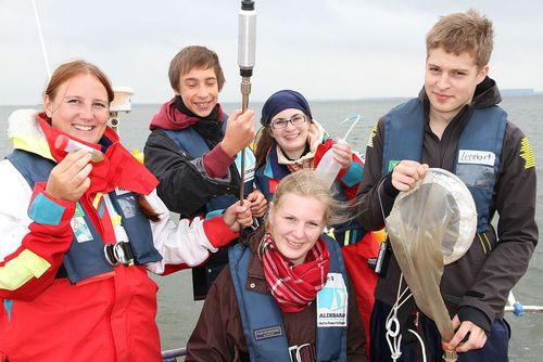 Den Einfluss von verschiedenen Umweltparametern auf marine Lebensgemeinschaften untersuchte das Schülerteam der Gausschule in Braunschweig (9. Jahrgang) in der Elbmündung und Elbe. Das Team war begeistert von der Vielfalt der Kleinstlebewesen, die sie mit dem Plankton-Netz aus der Nordsee und Elbe fischten.