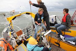 Begeistert und hautnah erlebten die Nachwuchsforscher der Gewinner-Teams aus Syke (bei Bremen) und Braunschweig den diesjährigen Meereswettbewerb Forschen auf See. Für die Jahreszeit ungewöhnliche Tiefdruckgebiete bescherten den Schülerinnen und Schülern viel Wind und so konnten sie neben ihren Forschungsobjekten das Meer von allen Seiten erleben.