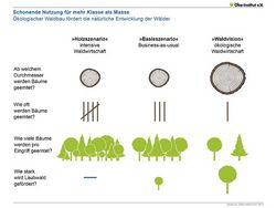 Das dritte Szenario analysiert die von der Holzindustrie geforderte intensive Bewirtschaftung. Bei ihr ergibt sich lediglich eine CO2-Minderung um 1,4 Millionen Tonnen pro Jahr.
