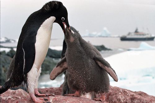 150.000 Adelie-Pinguine (Pygoscelis adeliae) verschwanden seit 2011 in der Commonwealth Bucht der Ostantarktis. Ein rund 2.900 Quadratkilometer großer Eisberg blockiert ihnen den Weg zu ihren Futterquellen. Jetzt müssen sie 60 Kilometer Umweg watscheln, ehe sie ans Meer und zu den Fanggründen mit frischen Fischen gelangen.
