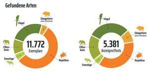 Besonders auffallend: Im Gegensatz zu früheren Untersuchungen fanden die Artenschützer auf einigen deutschen Portalen auch viele Elfenbein-Artikel. In 172 Angeboten bewarben Händler 211 Artikel aus Elfenbein oder mutmaßlichem Elfenbein, so die Artenschützer. Zahlreiche Angebote enthielten demnach Umschreibungen für den Begriff „Elfenbein“, "offensichtlich um so bestehende Handelsverbote auf Plattformen zu umgehen", vermuten die Aktivisten des Verbands.
