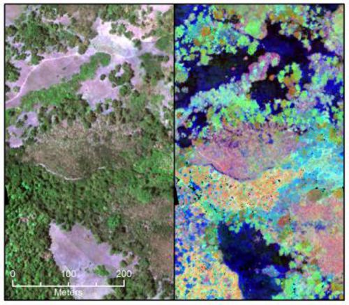 Zu dieser Erkenntnis gelangten jetzt Forscher der Carnegie Institution of Science in einer im Fachblatt Proceedings of the National Academy of Sciences veröffentlichten Studie. Pflanzen sind ein wahres Arsenal an Chemikalien- sie stecken voller kohlen- und stickstoffhaltiger Verbindungen, aber auch Wasser. Die Wissenschaftler um Erstautorin Kyla Dahlin machten diese Substanzen sichtbar- mit Hilfe der hochauflösenden Infrarot-Aufnahmetechnik CAO AToMS (Carnogie Airborne Observatory Airborne Taxonomic Mapping Systems). Diese deckt ein Farbenspektrum von 380 bis zu 2510 Nanometern (nm) Wellenlänge ab. Zum Vergleich: Das menschliche Auge nimmt lediglich den Bereich zwischen 400 und 700 nm wahr.