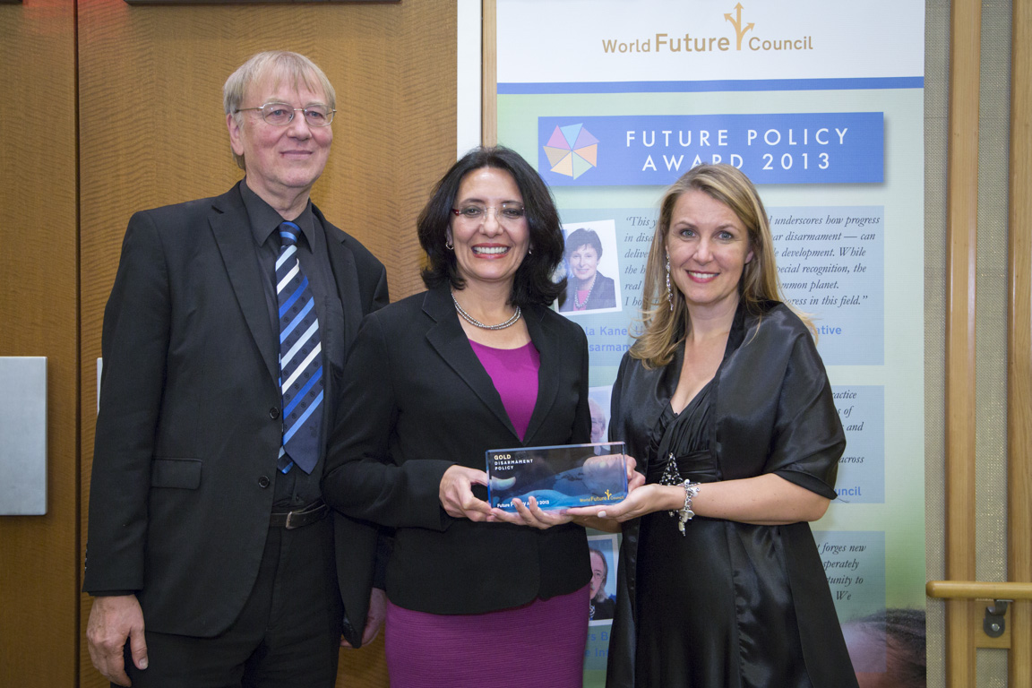 Hamburg, 28. Oktober 2013 – Großer Auftritt für den World Future Council im Herzen der Weltpolitik: Der Future Policy Award der Hamburger Stiftung zum Thema Abrüstung wurde im UN-Hauptquartier in New York verliehen. UN-Generalsekretär Ban Ki-Moon schickte ein Grußbotschaft, in der er betonte, der Preis ebne „den Weg für nachhaltige globale Abrüstung und eine nuklearwaffenfreie Welt“.
