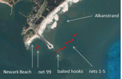 In KwaZulu-Natal kommt eine bislang völlig unterschätzte Gefahr hinzu: Hainetze an Badestränden zum Schutz der Menschen vor Angriffen großer Haie. Entlang der 37 hainetzbestückten Strände der 320 Kilometer langen Küste von KwaZulu-Natal stehen Hainetze mit einer Gesamtlänge von 23,4 Kilometern.
