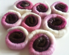 Shopangebot für Menschen mit Spinn-Leidenschaft: Sie können verschiedene Produktionsstufen der Faser erwerben: die rohe, lediglich gewaschene Faser oder die in weiteren Arbeitsschritten gefärbte, kardierte oder gekämmte Wolle.