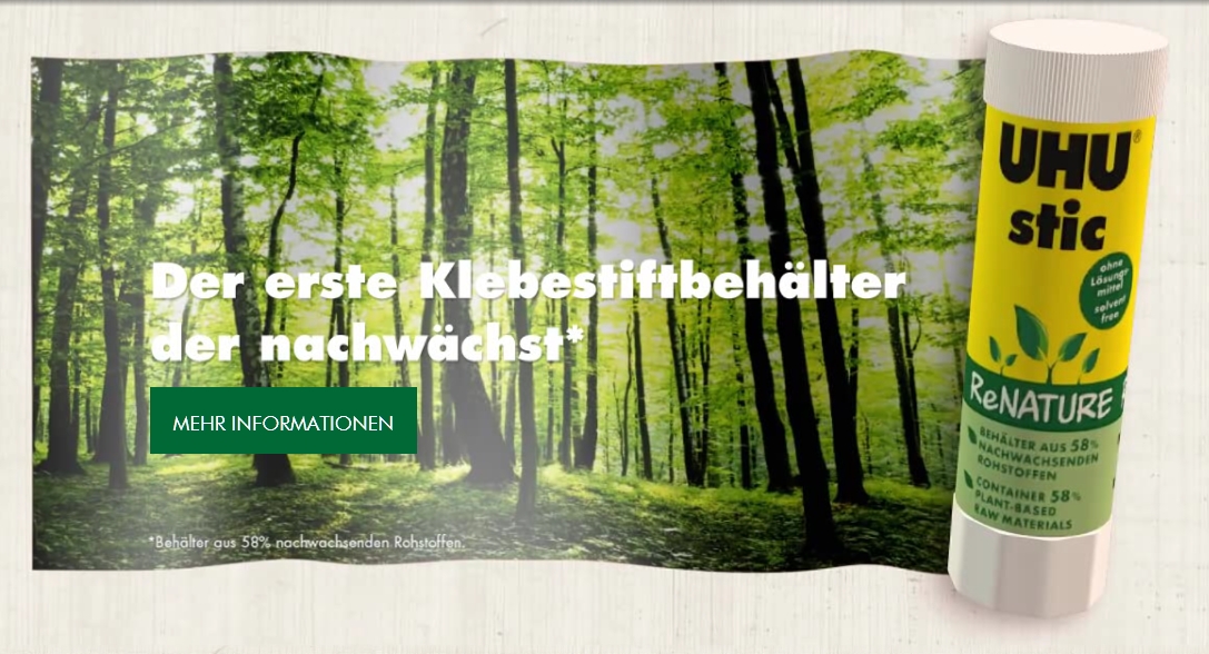 Der nachhaltige UHU stic ReNATURE macht auch was seine Kernkompetenzen angeht keine Kompromisse, Denn er klebt schnell, stark und dauerhaft, ist leicht verstreichbar, sehr ergiebig und natürlich kalt auswaschbar. Das ideale Produkt für Haushalt, Schule und Büro.