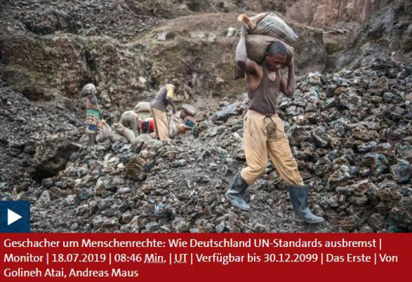 Und deutsche Ministerien bremsen auch immer noch beim Nationalen Aktionsplan Wirtschaft und Menschenrechte. Mehr Infos dazu in der Sendung Monitor – Geschacher um Menschenrechte: Wie Deutschland UN-Standards ausbremst.