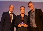 Hannes Jaenicke zwischen GREEN BRANDS-Initiator Norber Lux und Moderator Frietz Lietsch. Foto: GREEN BRANDS