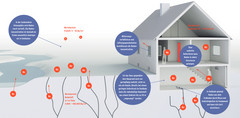 Radon entsteht aus Uran und wird aus Böden, Gesteinen, Baustoffen sowie Wasser freigesetzt. Man kann Radon nicht sehen, riechen oder schmecken. Während Radon in der freien Luft schnell zerfällt und kein Problem darstellt, kann es sich in Gebäuden und Wohnräumen auf gesundheitsgefährdende Art und Weise konzentrieren. Es dringt dabei vor allem über Haarrisse in erdberührten Betonbauteilen oder im Mauerwerk sowie über undichte Anschlussfugen und Leitungsdurchführungen ein. Die Konzentration in Kellerräumen ist demnach oft besonders hoch.