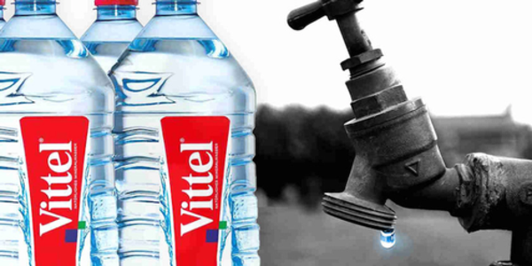 Im französischen Kurort Vittel pumpt Nestlé grosse Mengen Trinkwasser ab. Pro Tag füllt der Schweizer Nahrungsmittelkonzern mehr als zwei Millionen Liter Vittel-Wasser in Plastikflaschen. Als Folge sitzen die rund 5000 Einwohnerinnen und Einwohner zunehmend auf dem Trockenen: Der Grundwasserspiegel sinkt jedes Jahr um rund 30 Zentimeter (Infosperber berichtete).