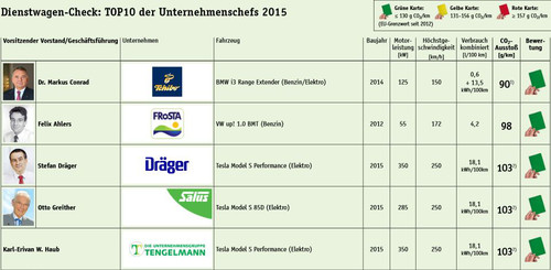 Solches Vorbild-Verhalten der Unternehmenslenker lobt DUH-Chef Jürgen Resch. Es könne aber nicht darüber hinweg täuschen, dass zwar viele Firmen bei der Anschaffung von Fahrzeugen für ihre Mitarbeiter auf niedrigen Spritverbrauch und Klimagasemissionen achten, aber nur wenige Firmenchefs wirklich Vorbilder seien: „Die Mehrzahl der befragten Firmenleitungen ist immer noch in klimaschädlichen Limousinen unterwegs oder verweigert die Auskunft“, kommentiert der Verband sein Umfrage-Resultat. Positiv merkt die DUH die „Entwicklung beim Firmenflottenwert“ an: Er verfehle mit 133g CO2/km nur knapp den EU-Grenzwert.