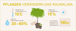 Jeder möchte in angenehm klimatisierten Räumen arbeiten. Wir dür Prozent% des gesamten Elektrizitätsverbrauchs weltweit verantwortlich sind. Wie kann das reduziert werden? Wenn man auf die Klimaanlage nicht verzichten möchte, wäre es ein Anfang sich für eine öko-freundliche Variante zu entscheiden. Pflanzen können wahre Wunder für das Raumklima bewirken. Sie können die Lufttemperatur um bis zu 10℃ verringern, die Luft verbessern und die Luftfeuchtigkeit zwischen 30-60 Prozent halten, der optimalen Spanne für Menschen. Des Weiteren zeigen Studien, dass Pflanzen die Arbeitsproduktivität um bis zu 15 Prozent steigern können.