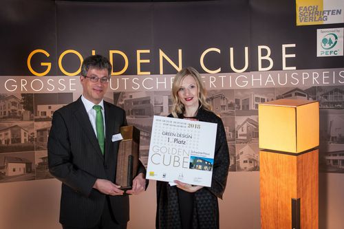 Das PEFC-zertifizierte Unternehmen SchwörerHaus erhält die „Golden Cube“-Auszeichnung in der Kategorie „Green Design“ des Fachschriften-Verlags.