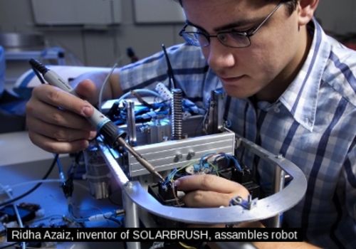 Noch ist Ridha Azaiz Maschinenbau-Student in Aachen. Nebenbei erfindet der 27-Jährige Deutsch-Tunesier mit Unterstützung der Bosch-Stiftung einen Roboter. Der reinigt Solarmodule. „Denn Staub“, sagt der Jung-Ingenieur, „behindert die Effizienz der Sonnenstrom-Ausbeute.“ Sein großes Ziel: Er will eine Firma finden, die er überzeugen kann, mit ihm bei der Produktion und Vermarktung seiner Erfindung zu kooperieren. Als Markt hat Azaiz vor allem die großen Kollektorenfelder in den Sandwüsten Arabiens im Auge.