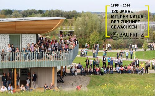 "Baufritz – Der Ökohaus-Pionier seit 1896", heißt es im Claim des Allgäuer Holzbau-Experten. Jetzt feierte das Traditions-Unternehmen sein 120-jähriges Firmenbestehen. Auftakt der Feierlichkeiten war ein Bankett mit 900 geladenen Gästen. Es folgte ein öffentlicher Aktionstag mit rund 10.000 Besuchern sowie der Eröffnung des neuen Konzept-Hauses "Haussicht".