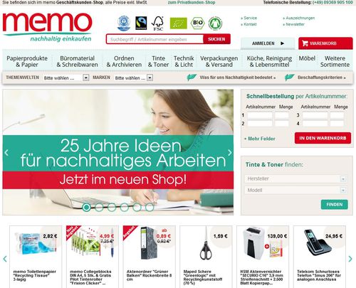 Die memo AG, der Pionier unter den Versandhändlern mit umwelt- und sozial verträglichem Sortiment, hat ihren Onlineshop komplett überarbeitet. Ab sofort richtet er sich ausschließlich an gewerbliche Endverbraucher.