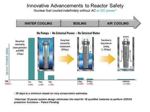 Entwickler Jose N. Reyes hatte das Unglück von Fukushima zu seiner Planung angeregt: Seine Lösung ist die viel kleinere Dimension des AKW: Der bislang lediglich als Computermodell existente Meiler wird nur rund 25 Meter hoch und hat einen Durchmesser von 4,5 Meter. Reyes: „Dadurch ist die Gefahr der Überhitzung kleiner.“ Er vergleicht seinen Reaktor mit Kaffee: In kleinen Tassen kühle der Inhalt rascher aus als im größeren Pott.
