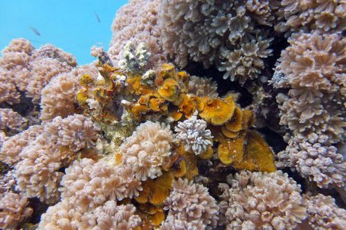 Den gleichen Effekt fanden die Wissenschaftler bei Braunalgen, die mit Moostieren oder Kleinalgen besiedelt waren. Beides sind für die Alge Stressfaktoren, gegen die sie – wie auch zahlreiche andere Bewohner im eng besiedelten Lebensraum des Korallenriffs – Abwehrstoffe wie die Polyphenole bildet.