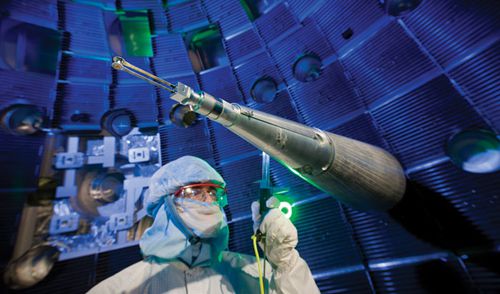 Ende September im Lawrence Livermore National Labor in Kalifornien: 192 Laserstrahlen aus dem weltweit stärksten Laser sausen auf ein Wasserstoffkügelchen. Dabei werden die Wasserstoffatome des Kügelchens so sehr erhitzt, dass sie fusionieren und Energie freisetzen – erstmals mehr Energie, als für die Fusionierung aufgewendet werden musste.